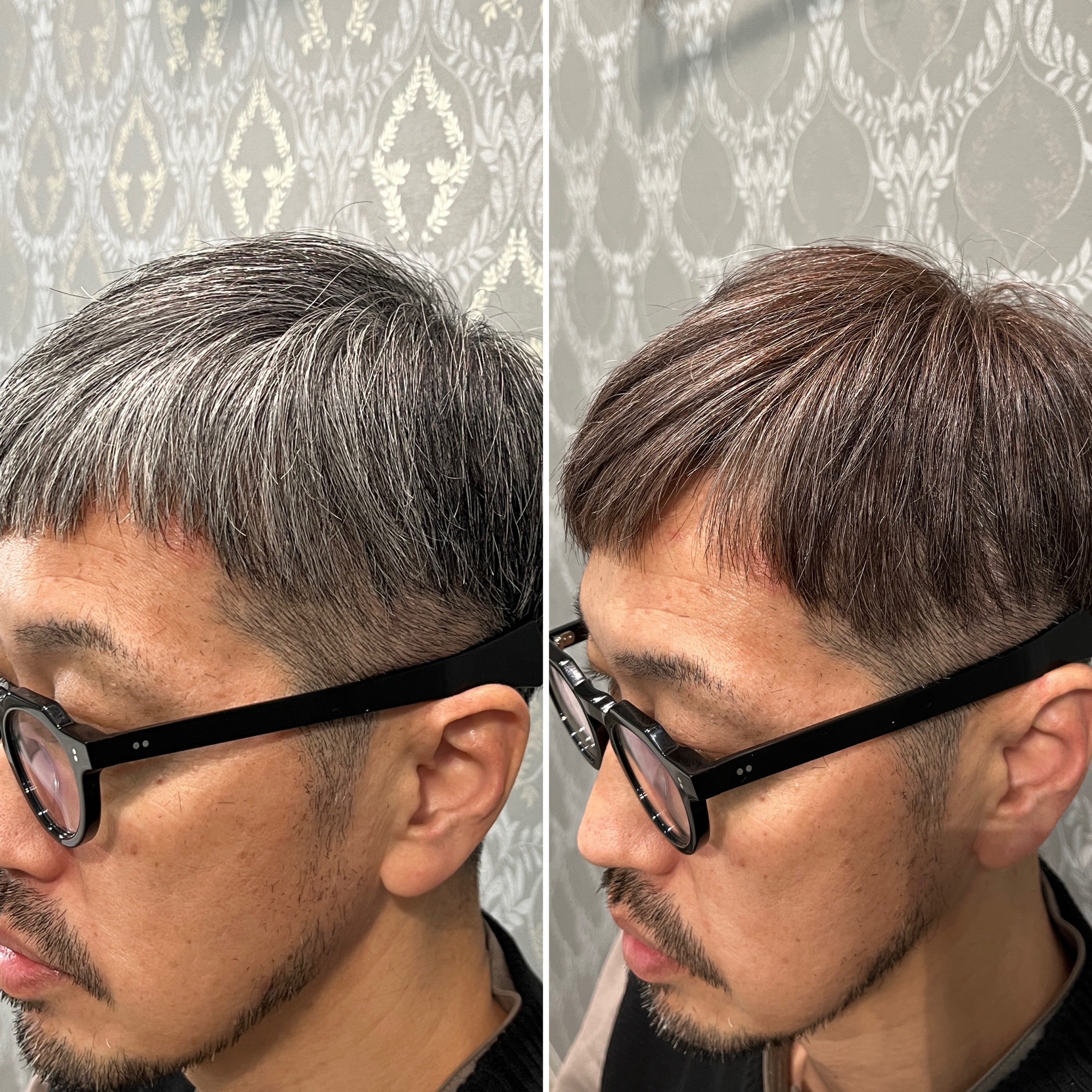 一度も白髪染めをしたことのない毛髪のカラーです。色味はグレージュ。白髪が増えてきていづれ染めをやめようと考えられてる方にもお勧めのカラーです。