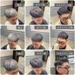 参考写真のスタイルは、グレーのマニキュアで白髪を柔らかく馴染ませたデザインです。スタイリング剤をつけることでより艶と色味の印象も異なります。